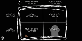 - Feedback: most courses had no feedback; mine has micro-actions you can take with fast feedback in days, more likely within hours, from me, from peers, and from prospects!